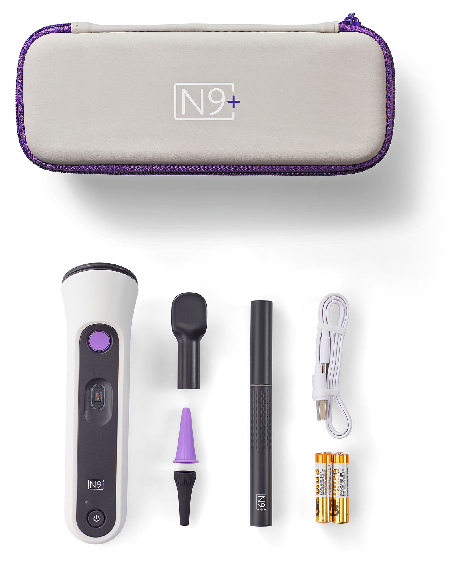 Your kit includes the N9+ Multi-Sensor Device, the N9+ wireless camera (Otoscope) and a patient App that operates the handheld devices, which house sensors used to conduct physical measurements.